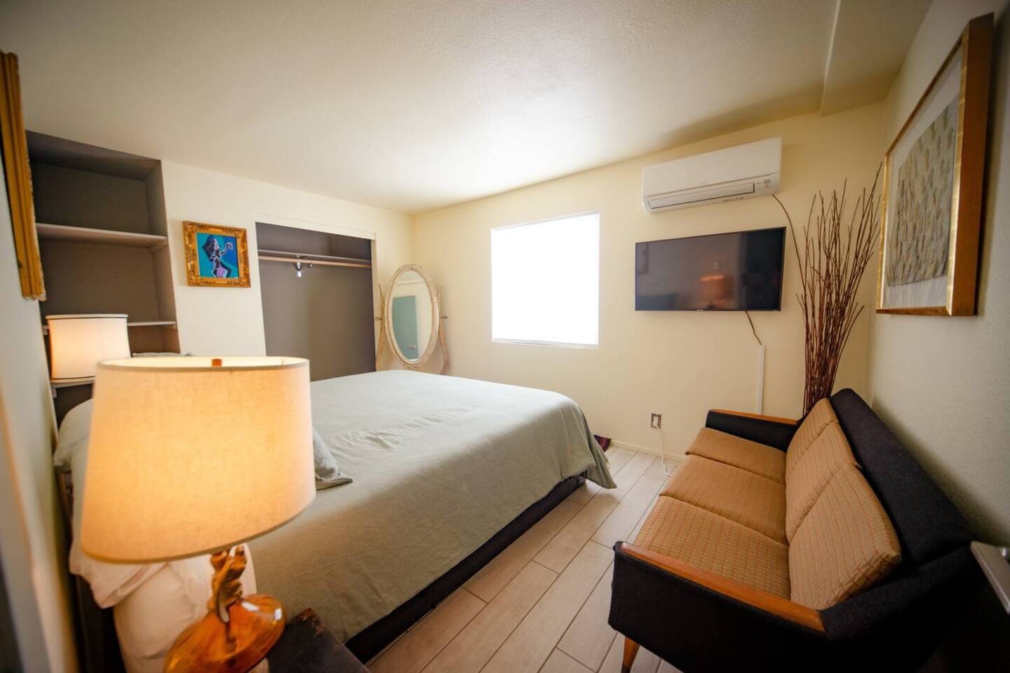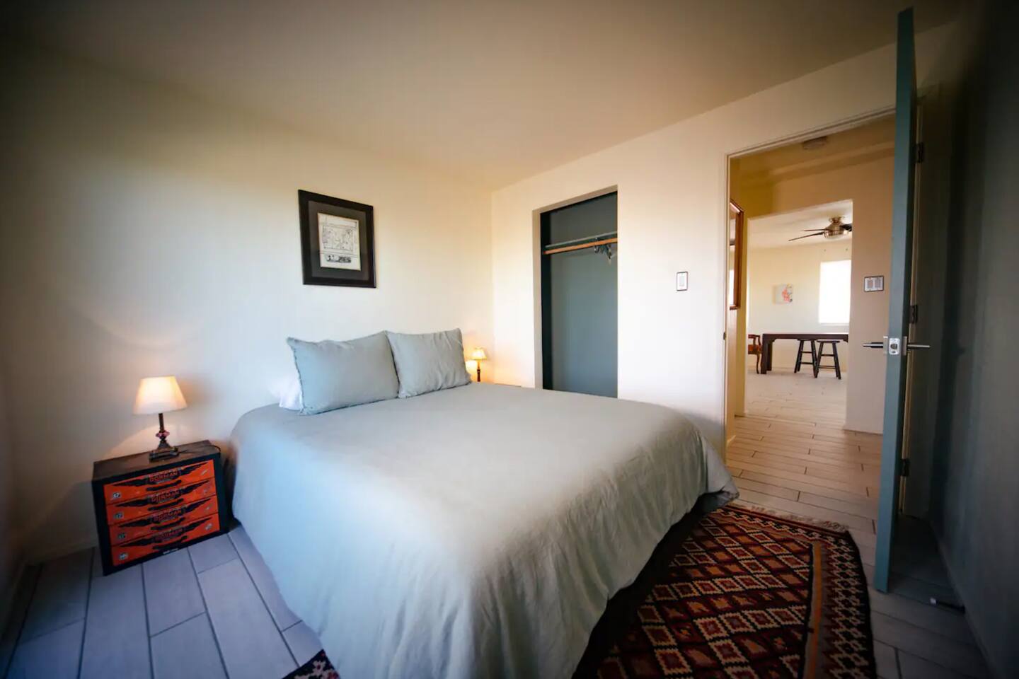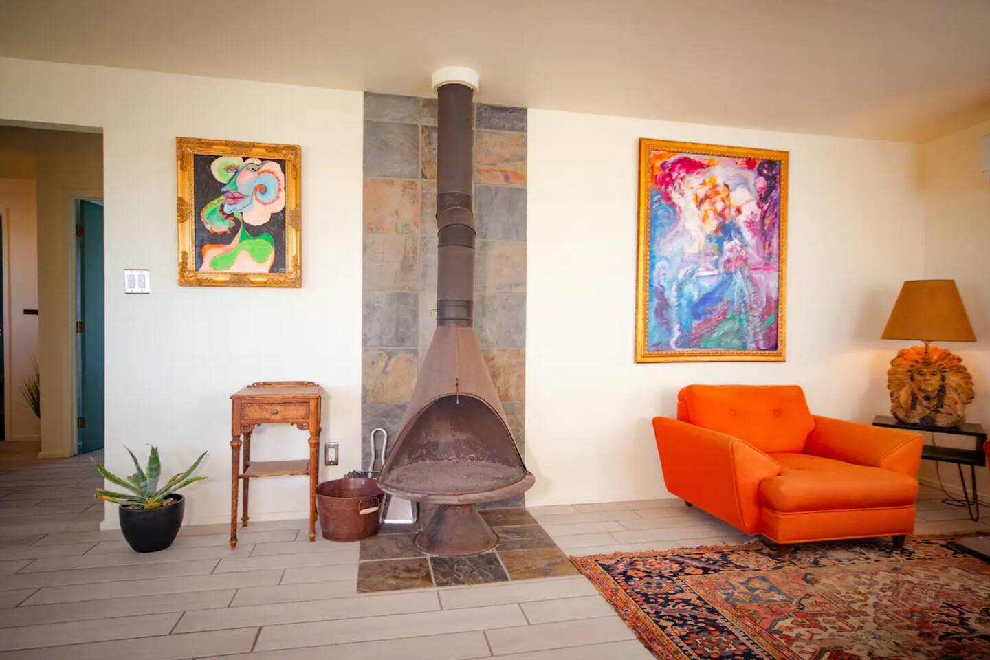 Chic desert hideaway in Landers with two king bedrooms, a soaking tub (full shower coming soon!), hot tub under the stars, indoor fireplace, outdoor firepit, BBQ, A/C, and curated art throughout. Located on an expansive 6 acre lot with magnificent views of Goat Mountain. Minutes to the Integratron, La Copine, & Landers Brew. Cozy, stylish, and serene—perfect for couples or small groups seeking stillness, scenery, and a taste of high desert magic.