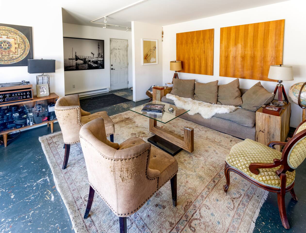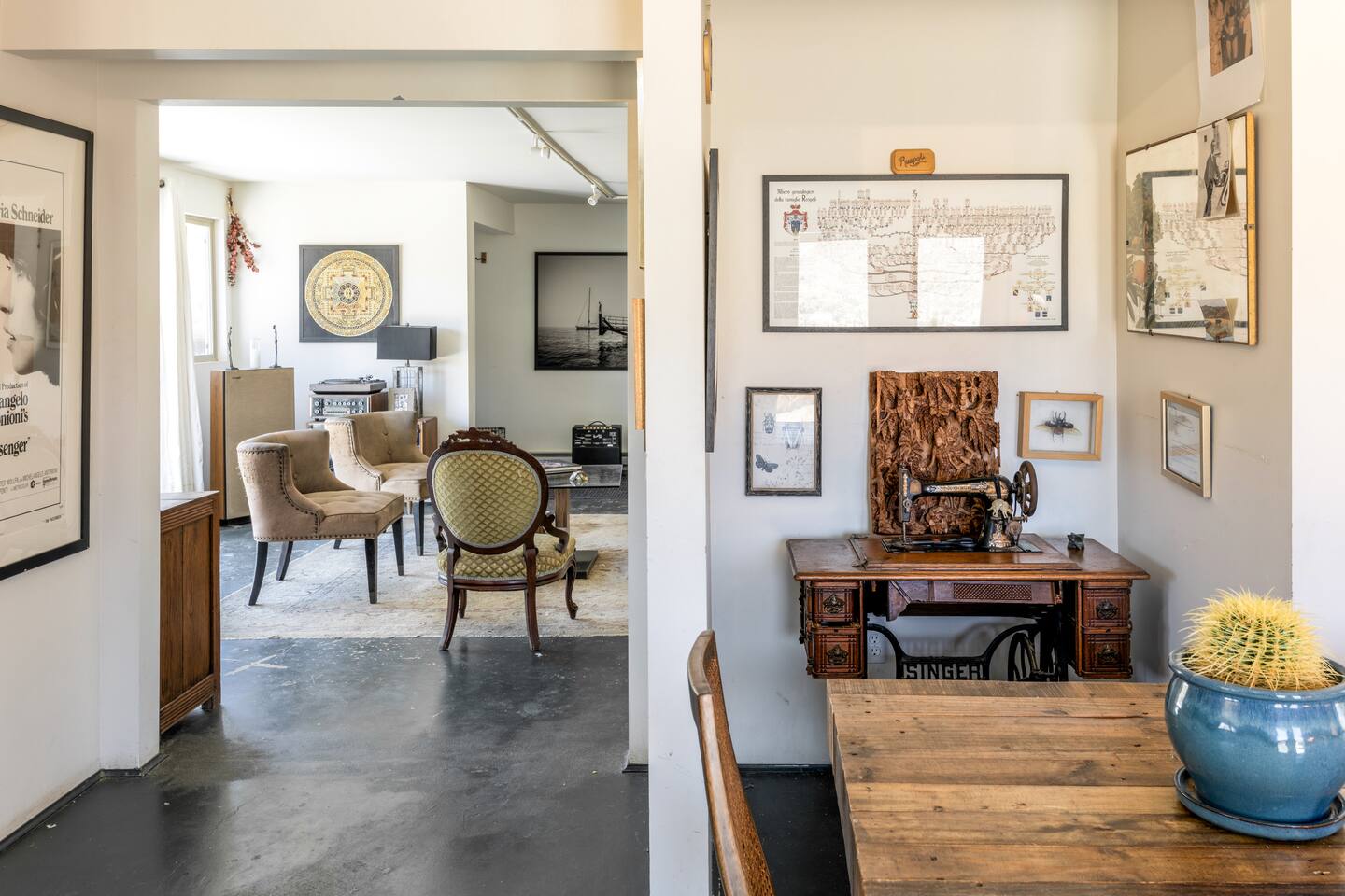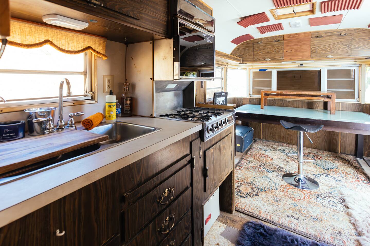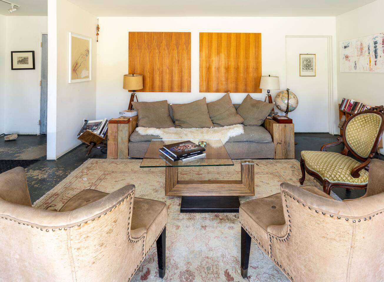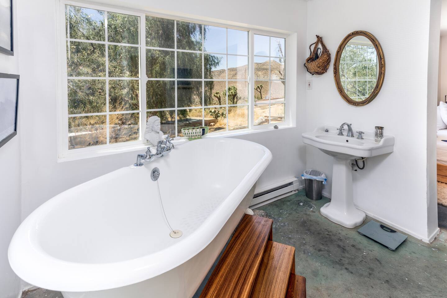 High Desert Protocol — A Secluded Creative Compound for Groups, Gatherings & Getaways Welcome to High Desert Protocol, a 6-acre sanctuary tucked into the hills above Yucca Valley—just a short drive from Pioneertown, Joshua Tree National Park, and the iconic Pappy & Harriet’s. Designed for creative communion, private restoration, and unforgettable gatherings, the compound features three distinct homes, three beautifully restored vintage trailers, a converted shipping container art gallery/bedroom, and a converted boat.The Compound can comfortably sleep up to 19 guests (and more with advance notice). We just completed the newest addition to our property - the Quonset Hut. Designed as a large multipurpose event space, the Quonset Hut can host dinner parties, events, parties, screenings, performances, and more. The Quonset Hut adds an additional bathroom to the property with a massive two-headed concrete shower. Designed by a musician, the Quonset Hut is fully equipped as a recording studio. Musicians please inquire about using the recording facilities. Photos of the Quonset Hut coming soon. ✹ What You’ll Find Across the Property: - Three King Beds, plus additional single and full beds - Three Full Kitchens, including a fully-stocked outdoor kitchen with grill, griddle, and smoker - 80-foot Above-Ground Concrete Pool & Hot Tub (clothing optional) - Shaded Cabana Lounge with sun loungers - 9-Foot Grand Piano in the main house - Fire Pit (BYO wood, wind + weather permitting) - Hundreds of Acres of Pristine Public Land at your doorstep—ideal for hiking and stargazing THE SPACES ✹ The Main House (The Robin’s Egg) Master bedroom with king bed, soaking tub, and chef’s kitchen Guest room with two single beds and separate bathroom Large living room with 80-inch flatscreen TV and grand piano Indoor/outdoor dining areas Recently painted a vibrant, inviting green (updated photos coming soon!) ✹ Vintage Canned Ham Trailer Located beside the main house Sleeps 1 in a twin bed Warm and nostalgic, equipped with space heater ✹ The Boat Behind the house One of the most popular sleep spots on the compound Outfitted with full bed + A/C (sleeps two) ✹ The Library Standalone structure with a king bed, massive soaking tub, private kitchen, custom concrete shower Immaculate interior design, perfect for lovers, thinkers, and solitude-seekers ✹ 1955 Spartan Trailer Features a full bed, private bathroom, and kitchenette ✹ Silverstreak Trailer Cozy full bed and desert views ✹ Converted Shipping Container Now a climate-controlled gallery/bedroom, complete with swamp cooler for A/C ✹ Vixen Vintage trailer. ✹ The Pool The compound’s 80-foot pool and jacuzzi are ideal for laps, sunbathing, or quiet sunset soaks. The energy is relaxed and clothing optional. Most guests go nude in the hot tub—it’s kept warm every evening. ✹ The Vibe We’ve built this space with care, over time. It’s a place of freedom, ease, creativity, and connection—with nature and each other. Many of our dearest friends were once Airbnb guests. Others come here and seek complete privacy. We honor both. This is an adults-only property. No one under 18 is permitted. We allow small events and gatherings with prior permission—please reach out if you're planning something special. ✹ A Few Ground Rules: Please rinse off before entering the pool/hot tub (no oils or sunscreen) Be respectful, kind, and aware—of others and the land Fire pit use is permitted only when there’s no wind and weather is safe. Bring your own wood. We’re here if you have questions. Be sure to read the reviews—and we truly hope to welcome you to High Desert Protocol.