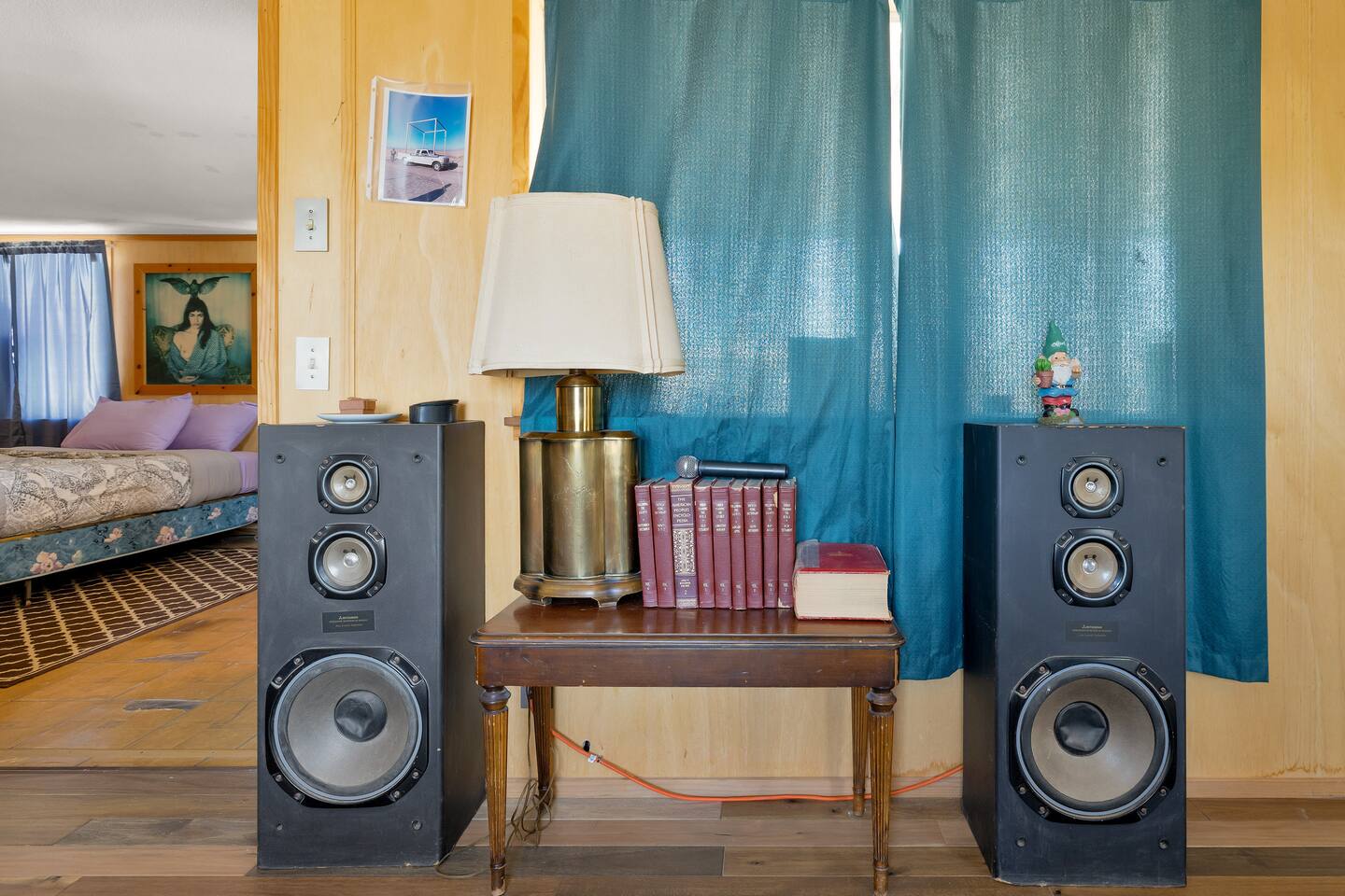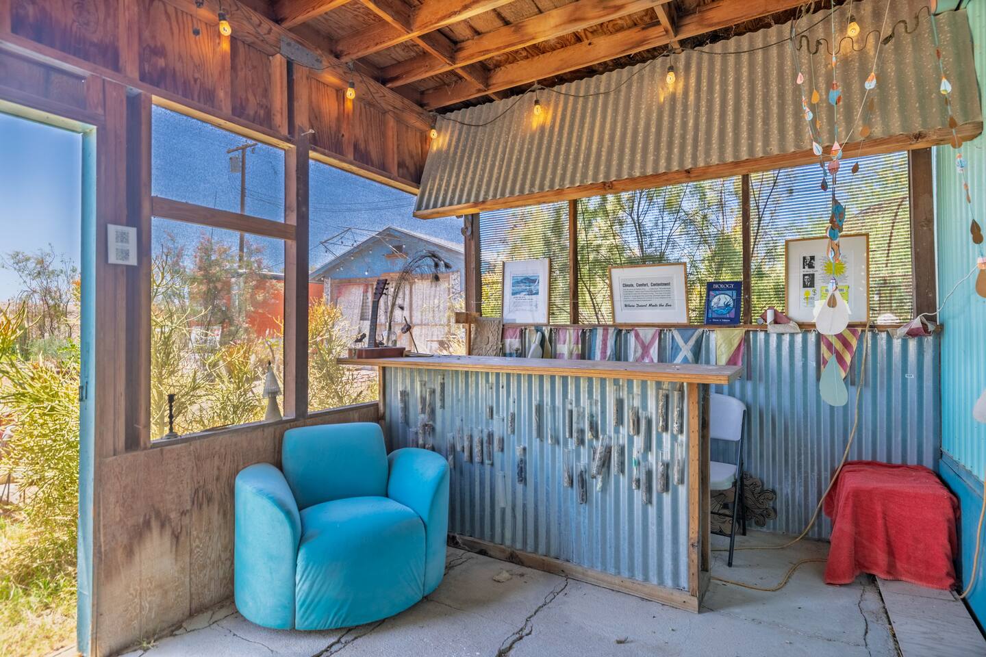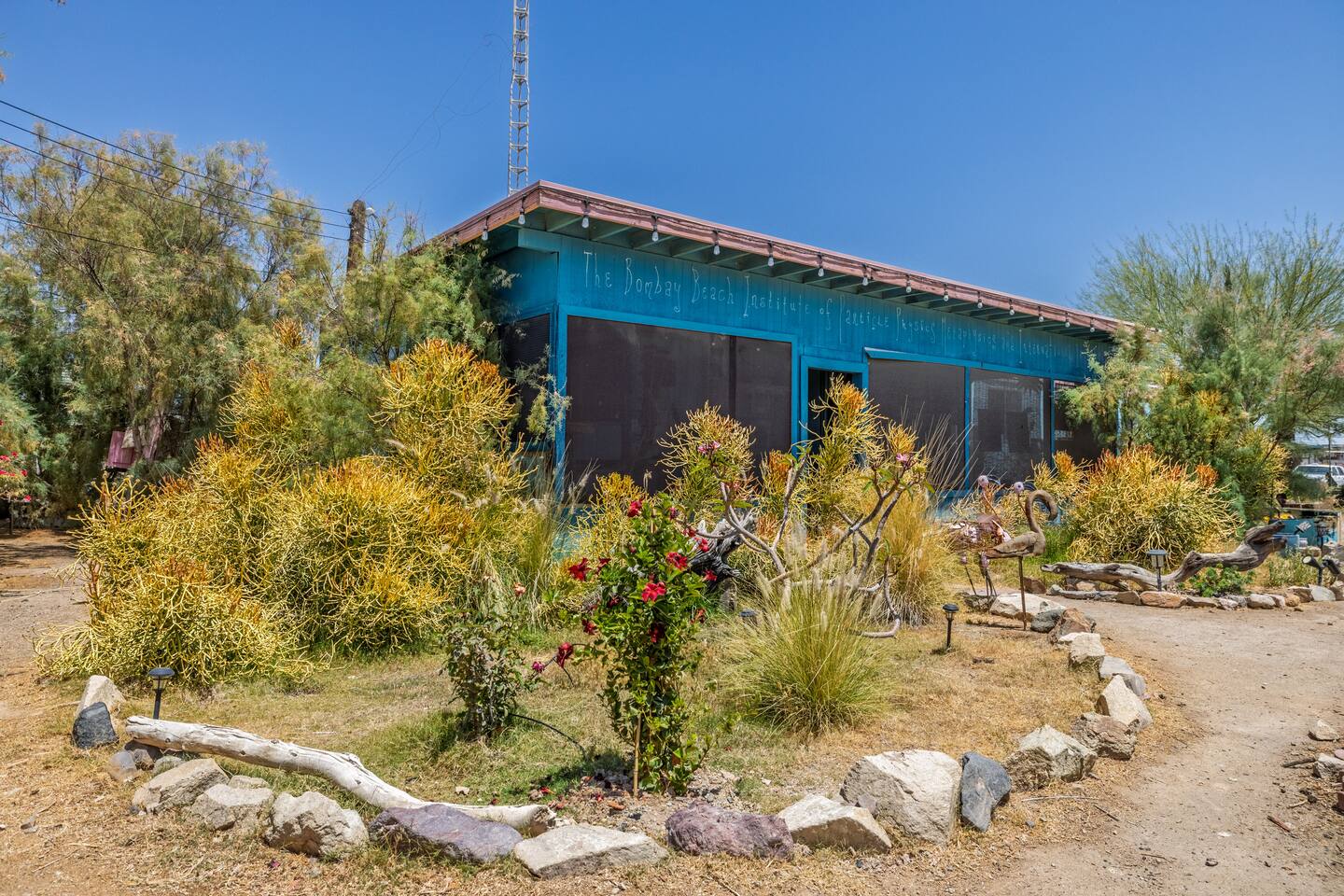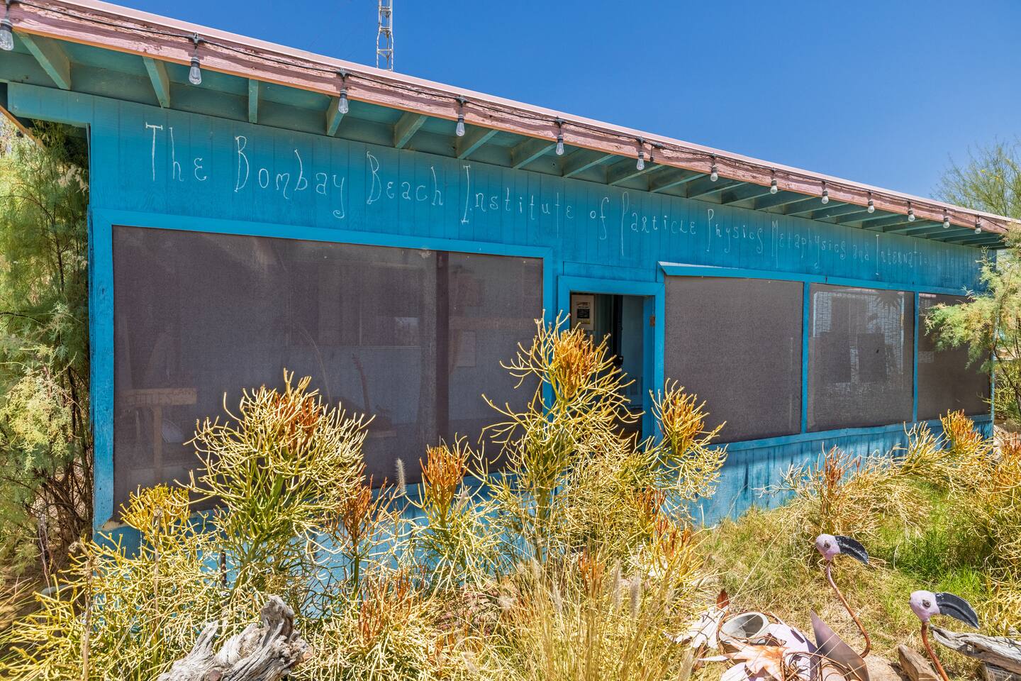 Welcome to The Bombay Beach Institute of Particle Physics, Metaphysics & International Relations. Yes, that’s the real name. No, we don’t expect you to understand it. But if you do, you’ll probably love it here. A cornerstone of the Bombay Beach Biennale and a sanctuary for the strange and sublime, the Institute is part art installation, part desert residence, and part fever dream. Here, the air buzzes with creative static, and every wall, corner, and object seems to be involved in some kind of silent but sensual argument about the nature of reality. The 3-bedroom house includes: A spacious primary room with a queen bed Two smaller bedrooms with full beds (ideal for couples, loners, or collaborative thinkers) A living area that feels like a Cold War lounge turned metaphysical observatory A full kitchen for culinary experiments (no guarantees on results) Air conditioning, because you’re still human after all Throughout the space, you’ll encounter curated art exhibits that change periodically, many of which contain nudity, surrealism, and philosophical obscenities. This is not a place for children, nor for those who require trigger warnings on their vacations. Outside, a private garden blooms with desert life and detritus — a lush oasis ringed with relics, sculptures, and soft spaces for smoking, dreaming, or arguing about time. Past guests have hosted readings, ritual dinners, sound baths, and the occasional international incident. Just blocks from the Salton Sea and surrounded by the weird and wonderful fabric of Bombay Beach — including Zig Zag Piazza, the Drive-In, and other legendary installations — the Institute offers not just a place to sleep, but a permission slip to lose your mind a little, and maybe come back with something better. Come prepared to be bewildered. Come with wine. Come with friends who ask big questions and laugh at strange times. The desert will do the rest.