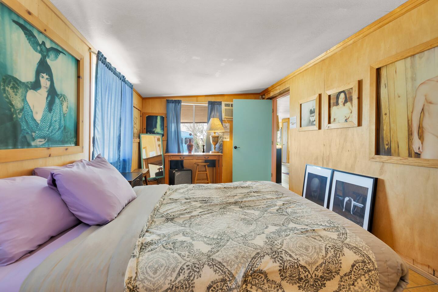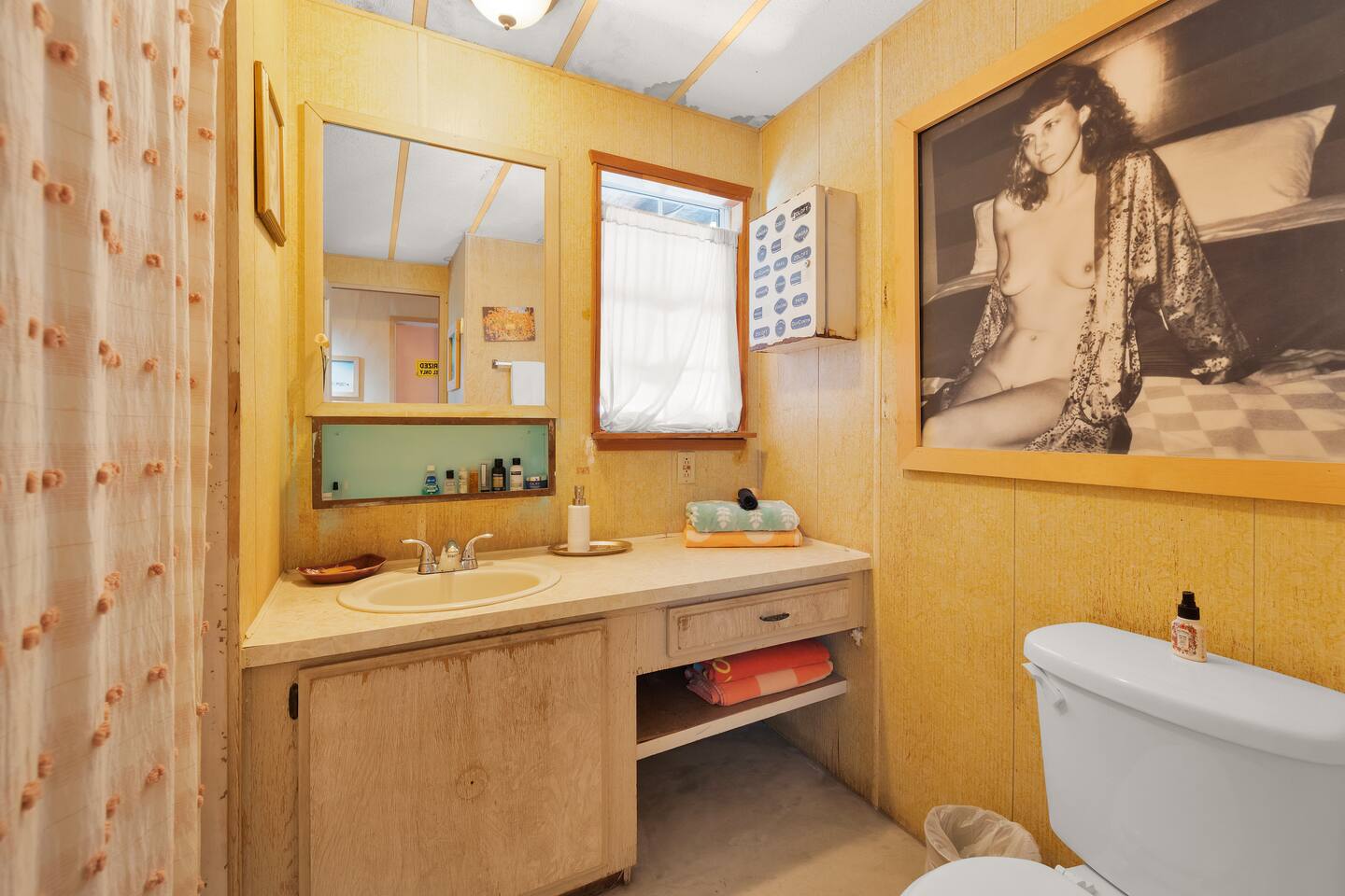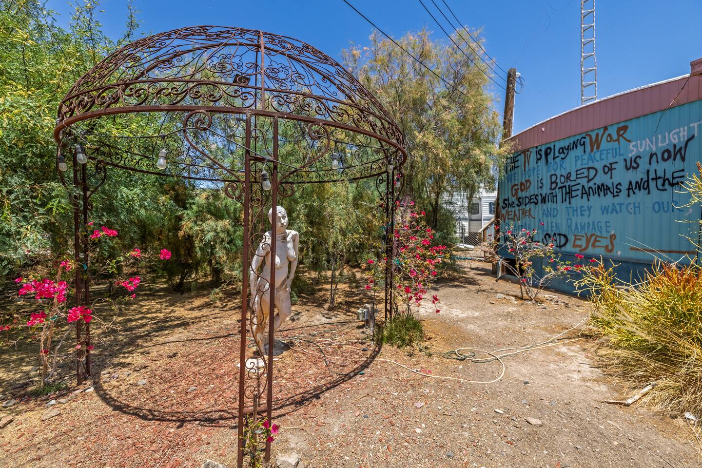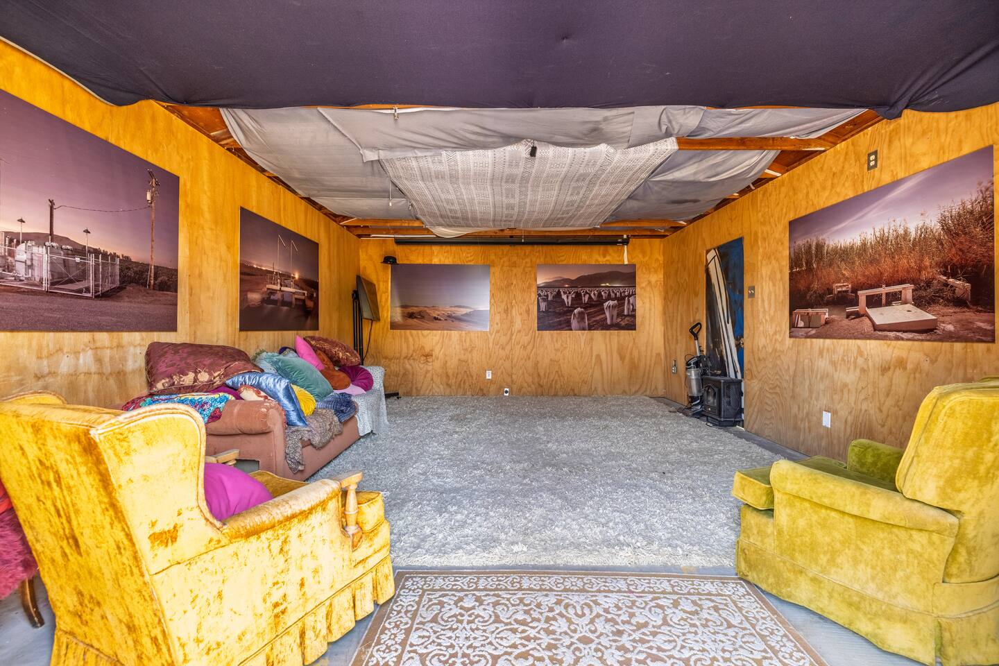 Welcome to The Bombay Beach Institute of Particle Physics, Metaphysics & International Relations. Yes, that’s the real name. No, we don’t expect you to understand it. But if you do, you’ll probably love it here. A cornerstone of the Bombay Beach Biennale and a sanctuary for the strange and sublime, the Institute is part art installation, part desert residence, and part fever dream. Here, the air buzzes with creative static, and every wall, corner, and object seems to be involved in some kind of silent but sensual argument about the nature of reality. The 3-bedroom house includes: A spacious primary room with a queen bed Two smaller bedrooms with full beds (ideal for couples, loners, or collaborative thinkers) A living area that feels like a Cold War lounge turned metaphysical observatory A full kitchen for culinary experiments (no guarantees on results) Air conditioning, because you’re still human after all Throughout the space, you’ll encounter curated art exhibits that change periodically, many of which contain nudity, surrealism, and philosophical obscenities. This is not a place for children, nor for those who require trigger warnings on their vacations. Outside, a private garden blooms with desert life and detritus — a lush oasis ringed with relics, sculptures, and soft spaces for smoking, dreaming, or arguing about time. Past guests have hosted readings, ritual dinners, sound baths, and the occasional international incident. Just blocks from the Salton Sea and surrounded by the weird and wonderful fabric of Bombay Beach — including Zig Zag Piazza, the Drive-In, and other legendary installations — the Institute offers not just a place to sleep, but a permission slip to lose your mind a little, and maybe come back with something better. Come prepared to be bewildered. Come with wine. Come with friends who ask big questions and laugh at strange times. The desert will do the rest.