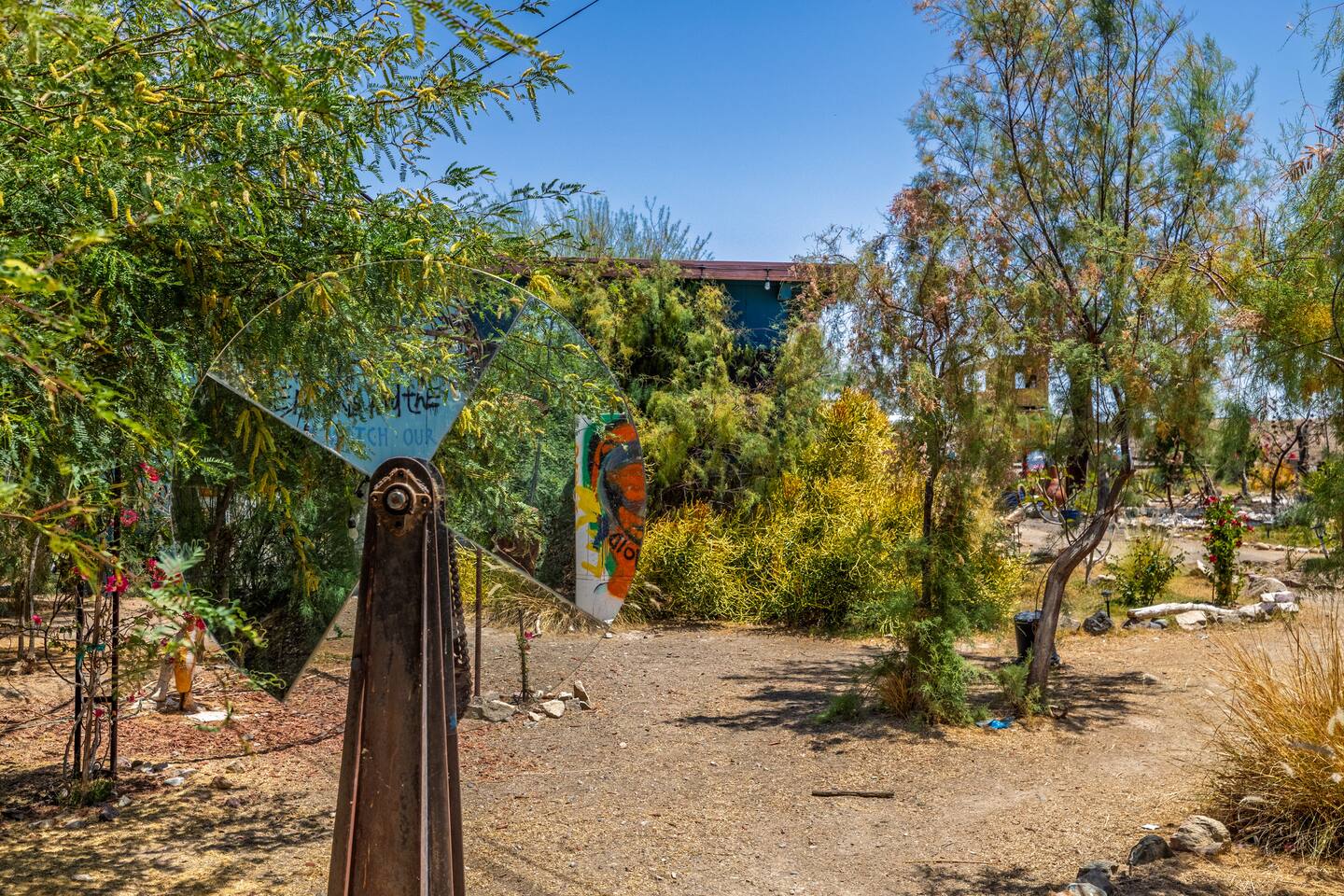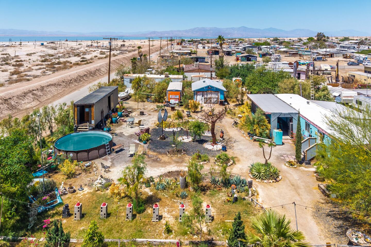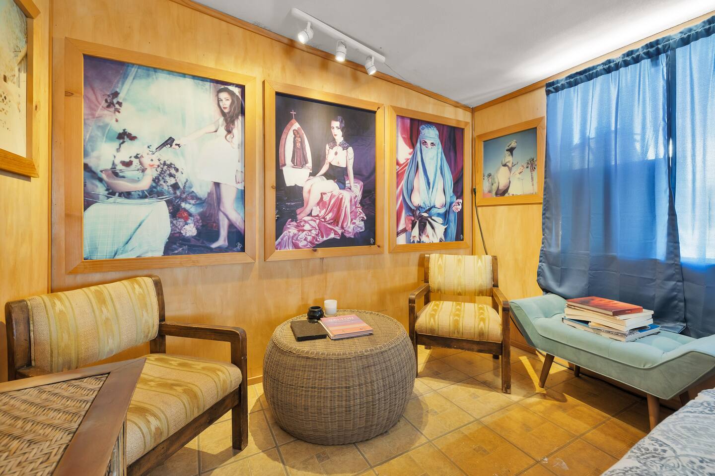 The Bombay Beach Institute is a surreal desert retreat and Biennale landmark, with Zig Zag Plaza right across the street. This 3-bedroom home features art exhibits, lush gardens, an equipped kitchen, large outdoor dining area, and cool, air-conditioned interiors. Located just steps from the Salton Sea and surrounded by iconic installations. Note: Art includes nudity—not suitable for children or the easily offended.