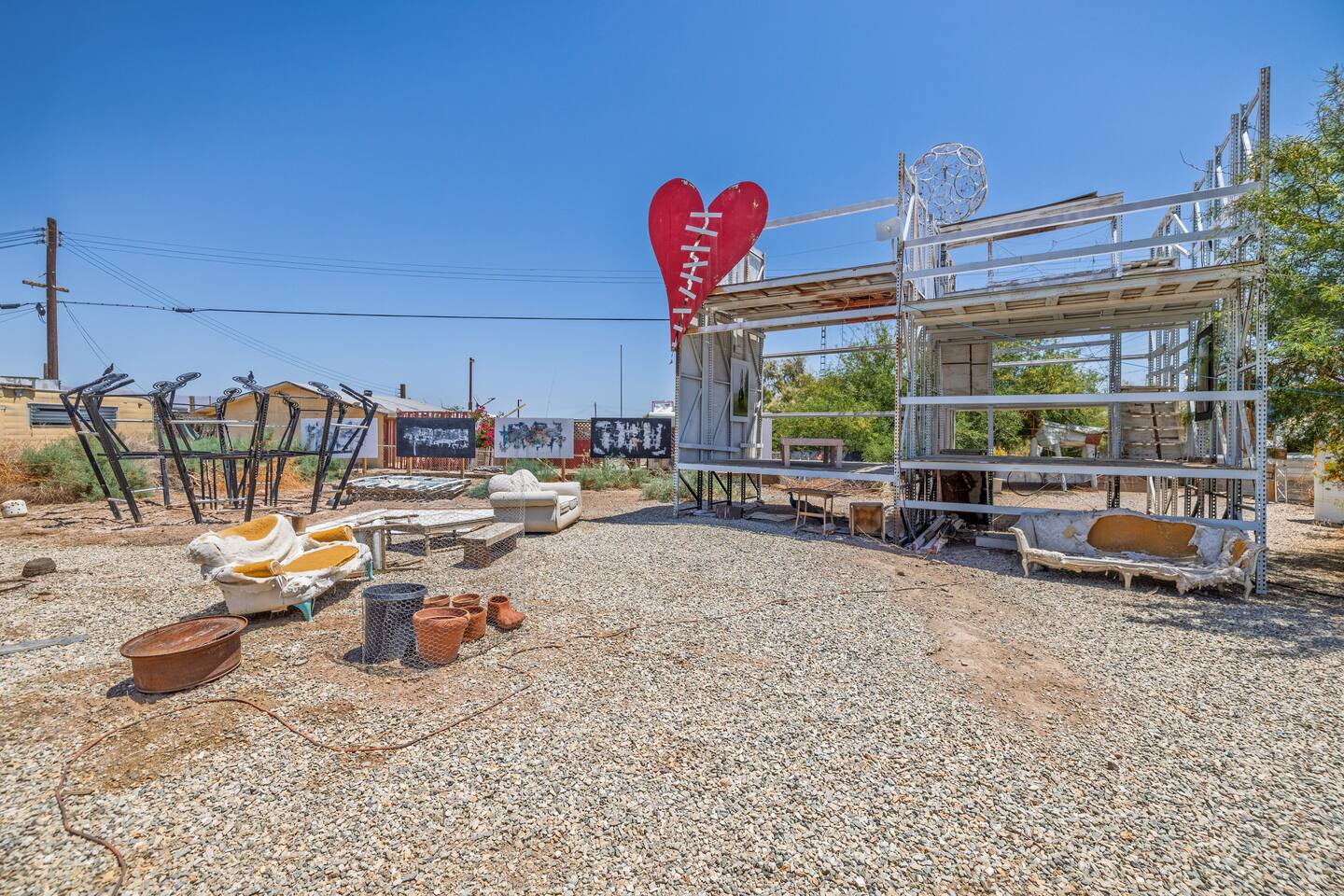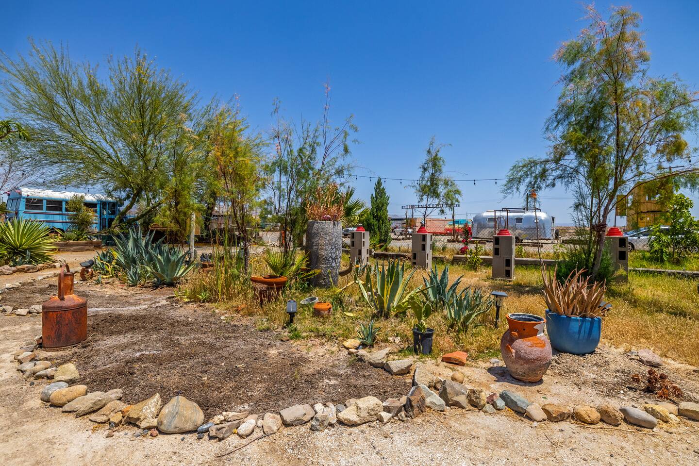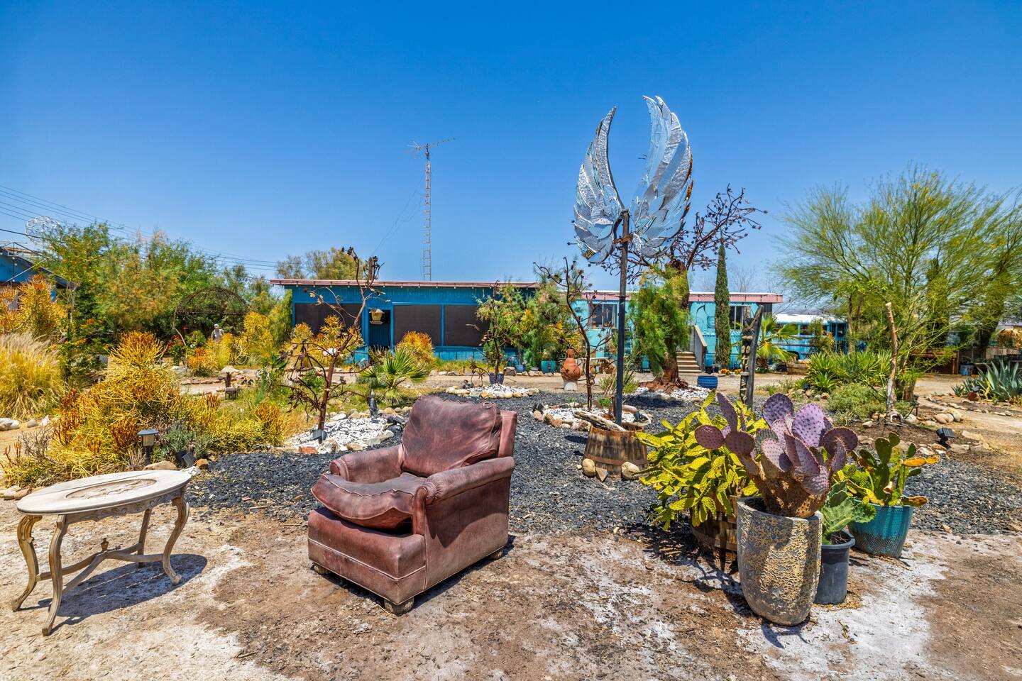 The Bombay Beach Institute is a surreal desert retreat and Biennale landmark, with Zig Zag Plaza right across the street. This 3-bedroom home features art exhibits, lush gardens, an equipped kitchen, large outdoor dining area, and cool, air-conditioned interiors. Located just steps from the Salton Sea and surrounded by iconic installations. Note: Art includes nudity—not suitable for children or the easily offended.