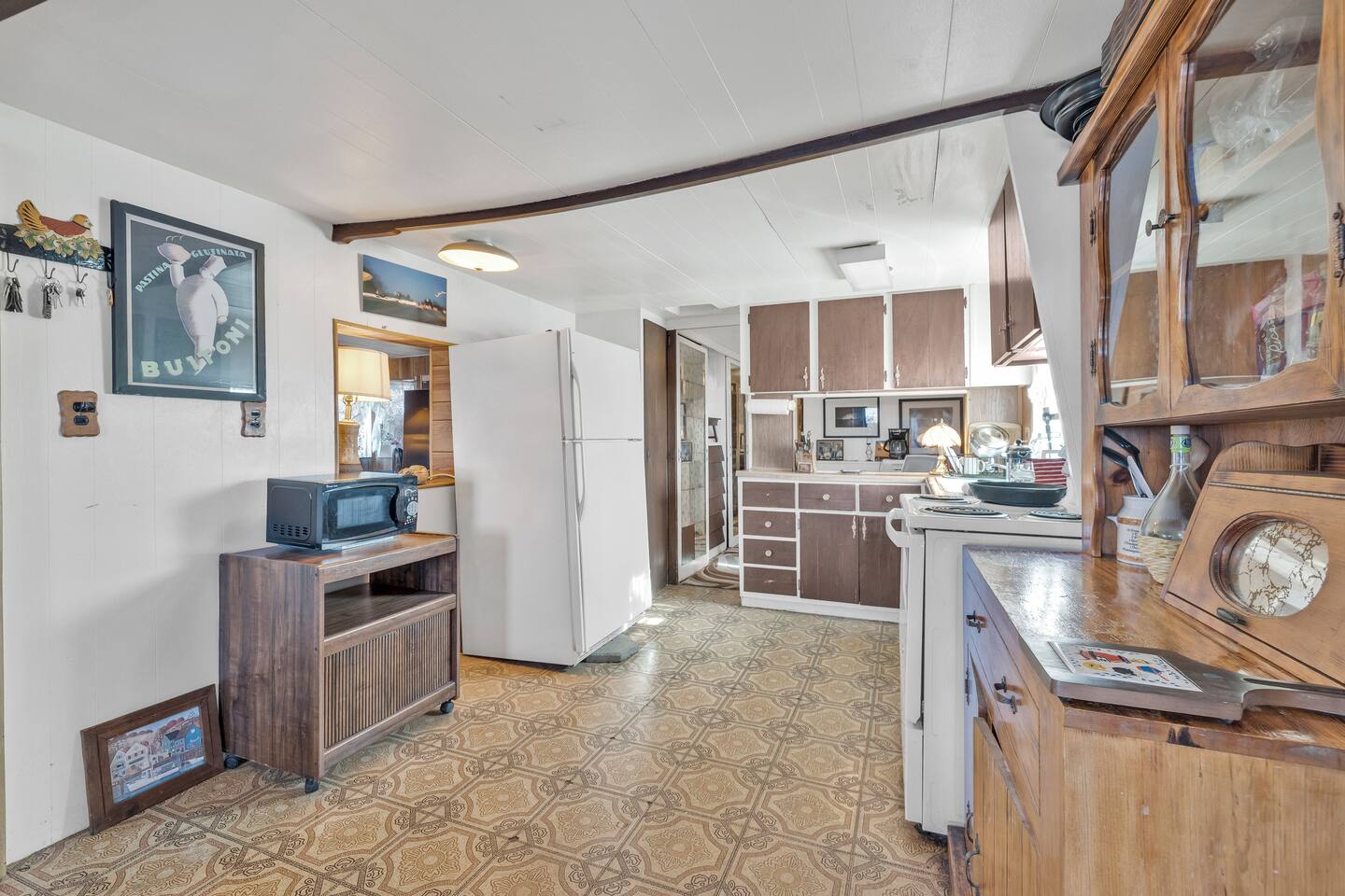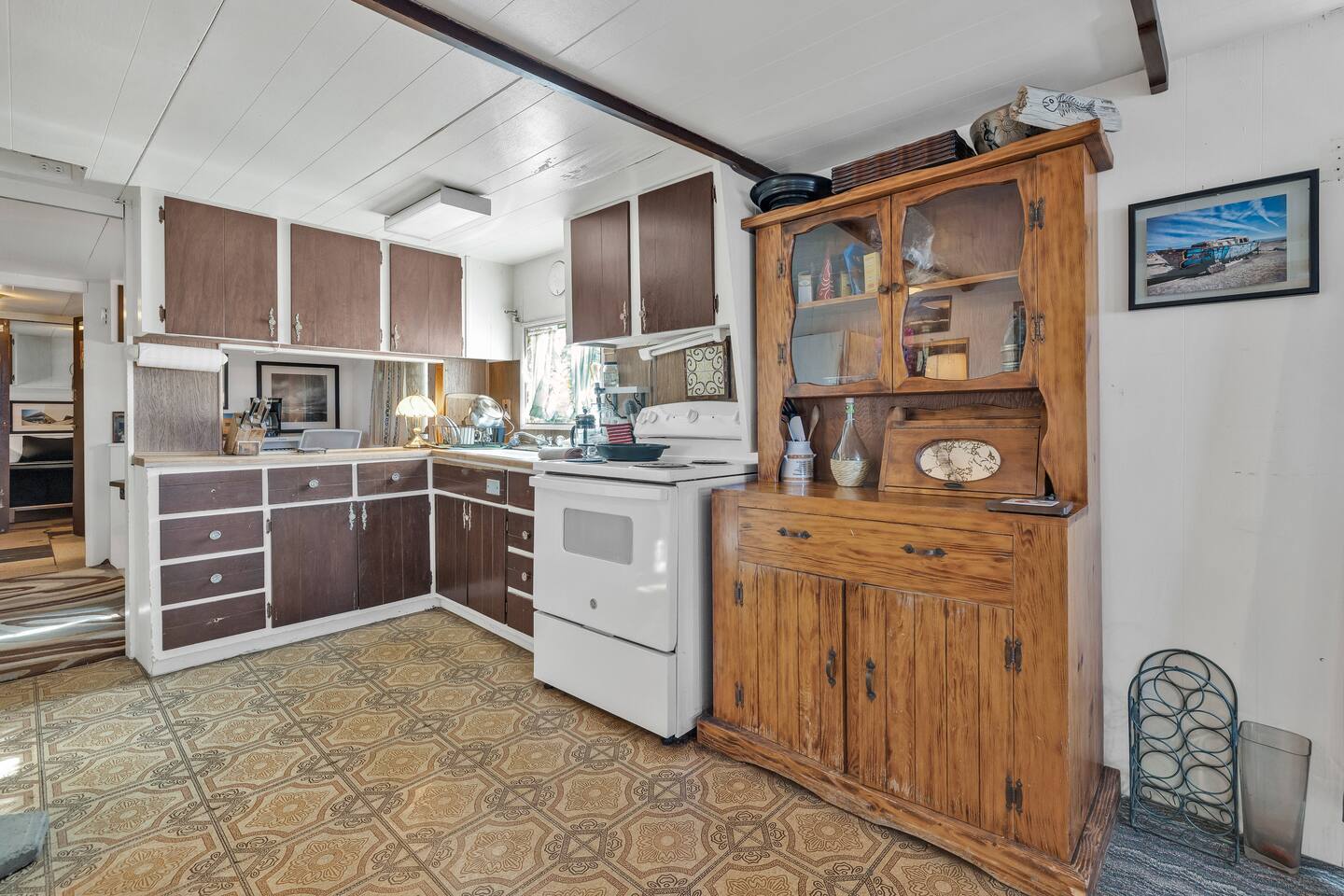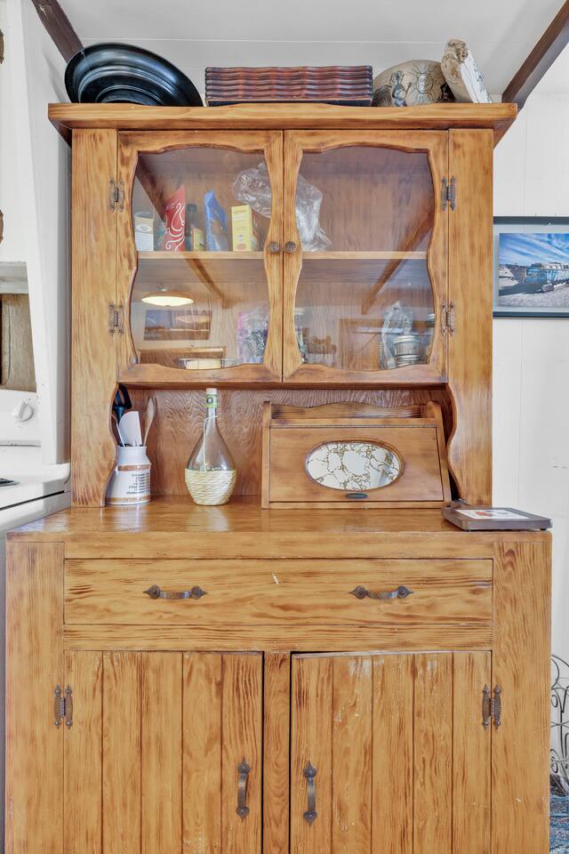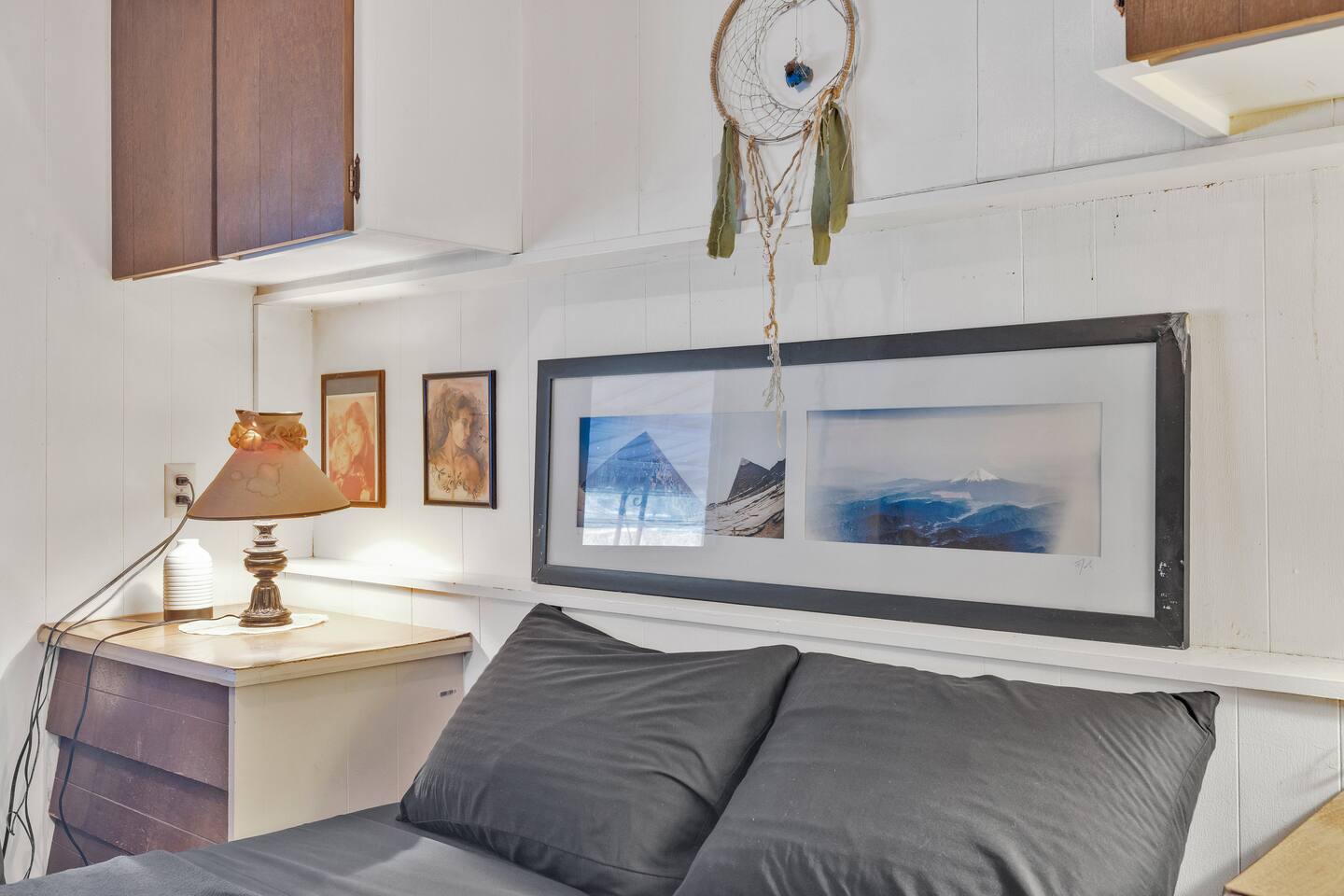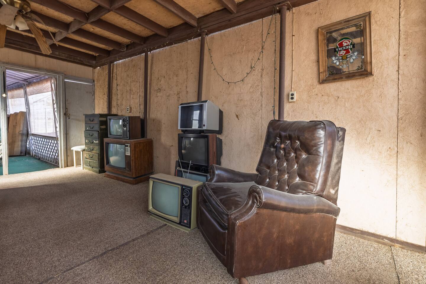A kitsch-soaked hideaway in the post-apocalyptic wonderland of Bombay Beach: step inside The Palazzo, where roadside Americana meets desert surrealism. This one-bedroom retreat is drenched in charm and eccentricity: think leather club chairs, vintage lamps, wood paneling, and bold prints by the photographer-owner. The atmosphere is equal parts lodge, love letter, and Lynchian living room. Located at 1st Street and Avenue E—just five blocks from the ghostly shores of the Salton Sea—this fully air-conditioned home is your launchpad for exploring the strange sublime of the Imperial Valley: Salvation Mountain, Slab City, East Jesus, and the decaying glamour of Bombay Beach itself. Inside: • A queen bedroom with crisp linens and dreamcatchers above the bed • A spacious living room with two sofas, armchairs, a flatscreen TV, and glowing lamps for that golden-hour glow all night long • A dining nook that conjures 1970s supper club vibes • A stocked kitchen and a cozy office nook with an ergonomic chair for remote work or poetic musing • Lighting-fast WiFi, three cooling units, and a porch facing the train tracks for your daily fix of cinematic ambience The lot is fenced, pet-friendly, and private. But remember: Bombay Beach is more than a destination—it’s an art colony, social experiment, and poetic ruin. There’s no gas station. But there is magic.