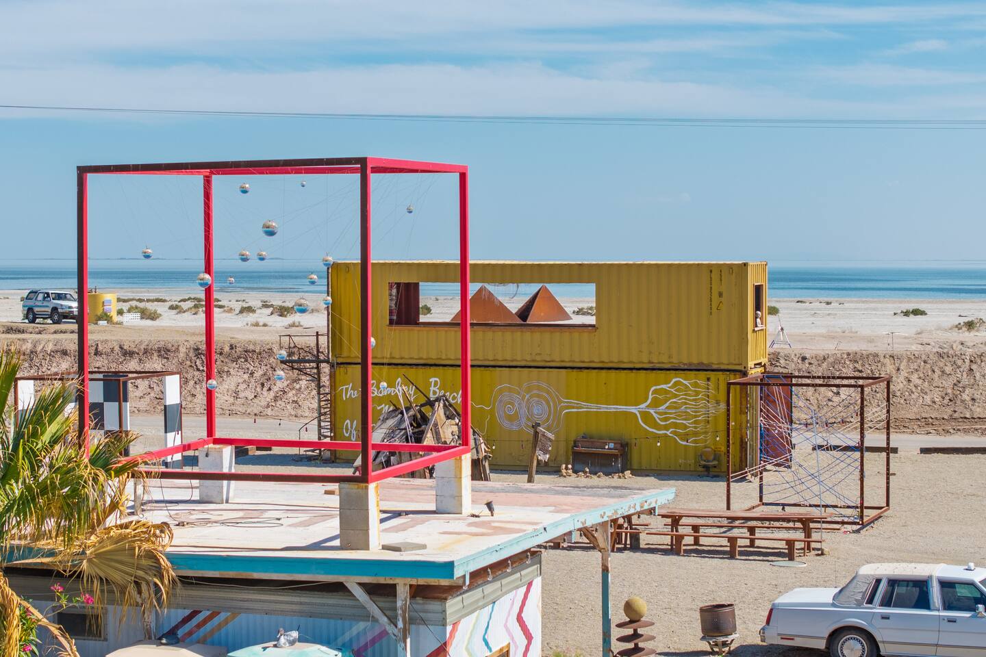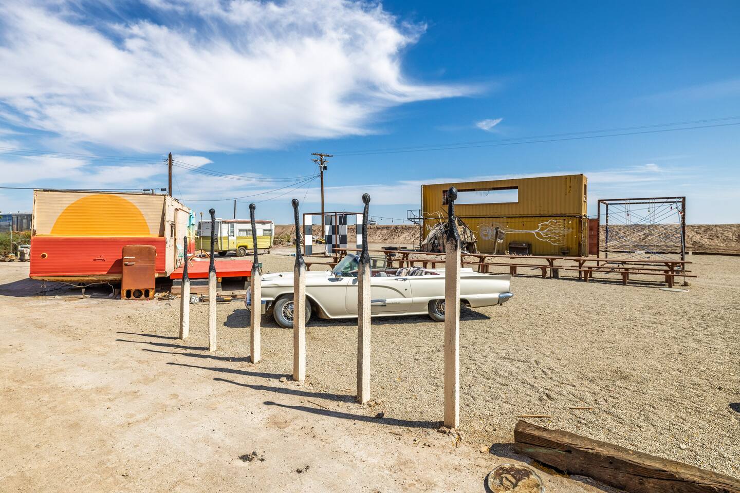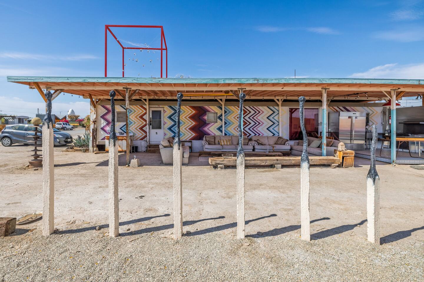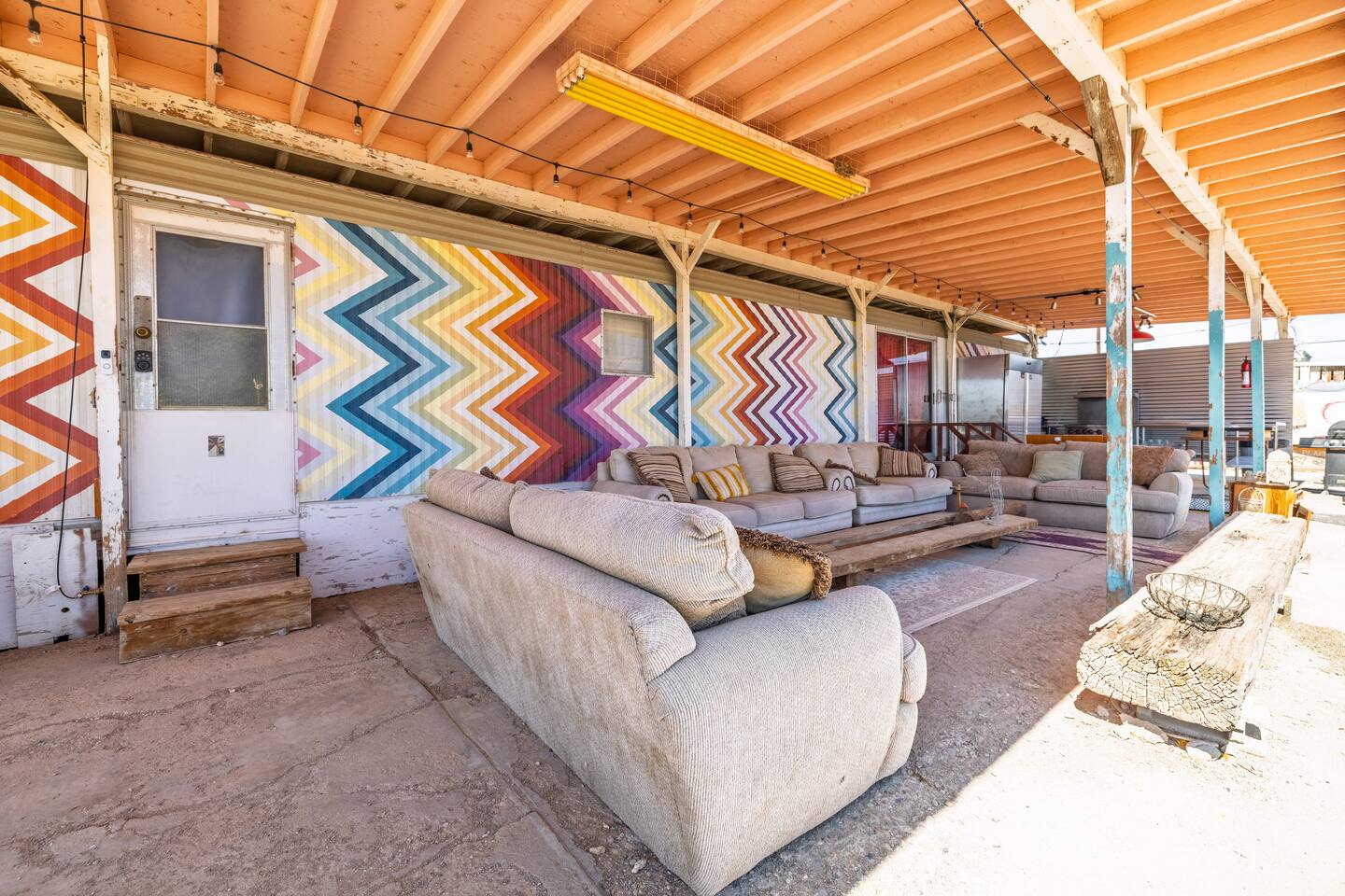Welcome to Zig Zag Piazza A cornerstone of the Bombay Beach Biennale and a sanctuary for the strange and sublime, the Zig Zag House is part art installation, part desert residence, and part fever dream. Here, the air buzzes with creative static, and every wall, corner, and object seems to be involved in some kind of silent but sensual argument about the nature of reality. The 3-bedroom house includes: A spacious primary room with a queen bed Two smaller bedrooms with twin beds (ideal for groups of friends or collaborative thinkers) A living area where mid-century silhouettes mingle with organic textures and artful accents. A full kitchen for culinary experiments (no guarantees on results) Air conditioning, because you’re still human after all Throughout the space, you’ll encounter curated art exhibits that may change periodically. Outside A full outdoor kitchen, perfect for hosting small events. Please inquire about event pricing. A spacious patio with two large couches for lounging and socializing. Zig Zag Piazza — home to an eclectic sculpture garden, the Bombay Beach Museum of Bombay Beach, a 60-person outdoor dining table, a small stage, and open-air hang space. Just blocks from the Salton Sea and surrounded by the weird and wonderful fabric of Bombay Beach — including The Institute Gardens, the Drive-In, and other legendary installations — ZigZag offers not just a place to sleep, but a permission slip to lose your mind a little, and maybe come back with something better. Come prepared to be bewildered. Come with wine. Come with friends who ask big questions and laugh at strange times. The desert will do the rest.