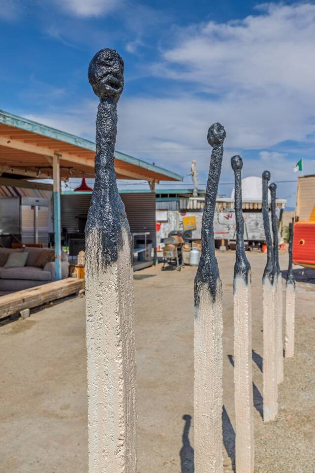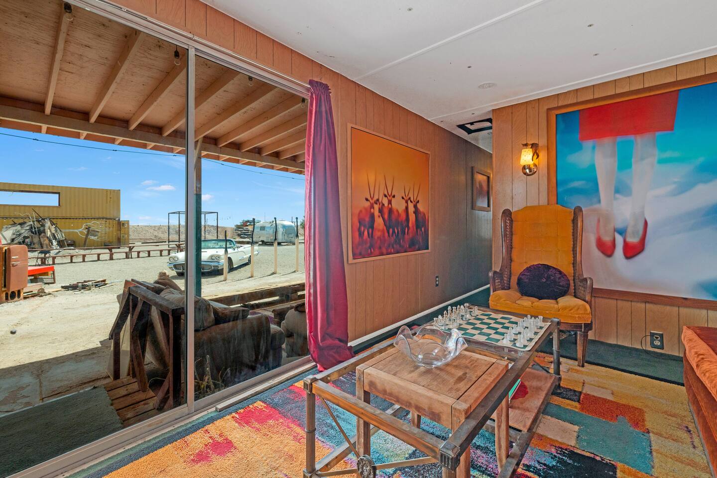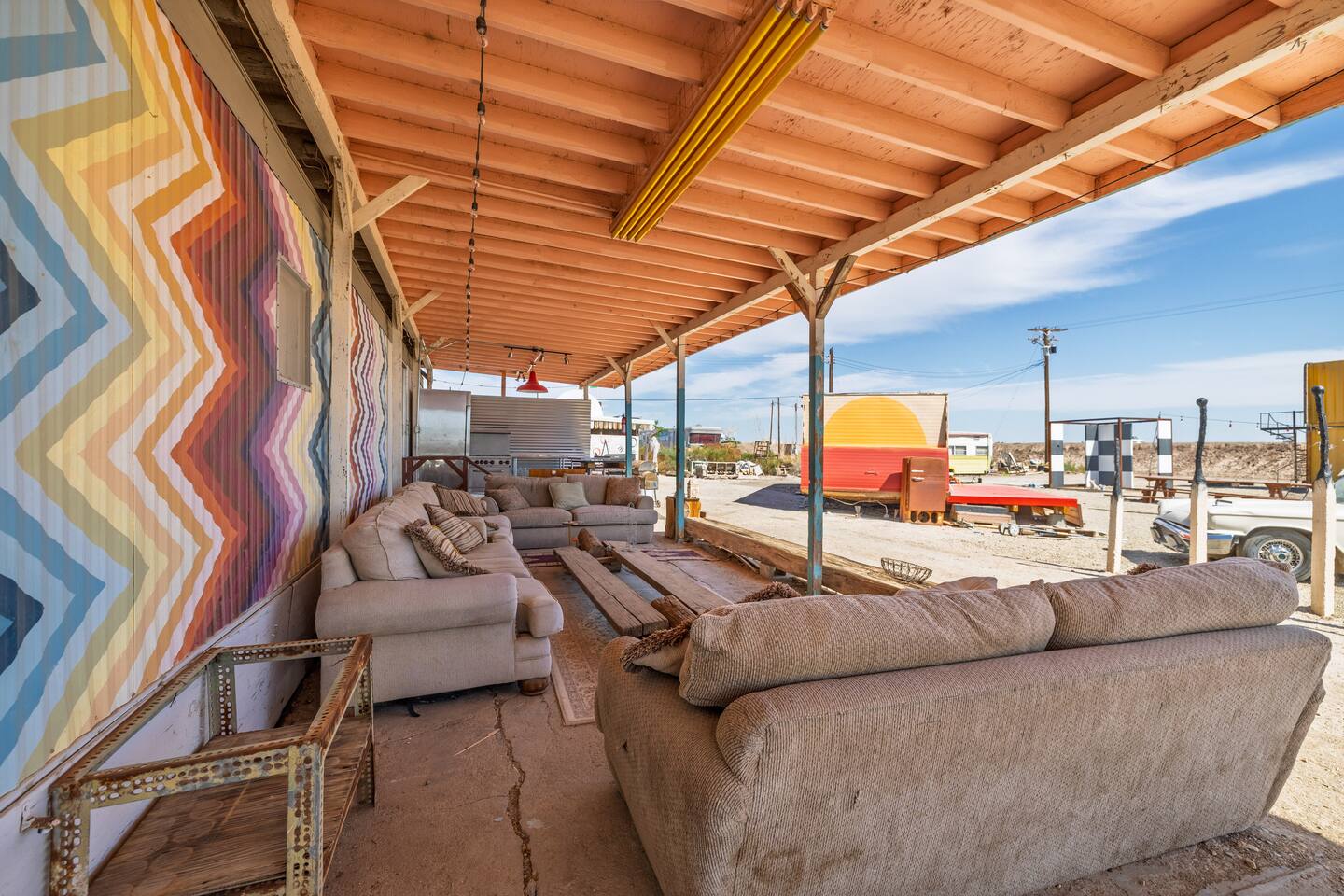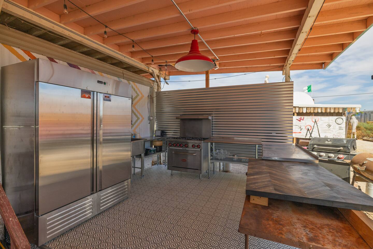 Welcome to Zig Zag Piazza A cornerstone of the Bombay Beach Biennale and a sanctuary for the strange and sublime, the Zig Zag House is part art installation, part desert residence, and part fever dream. Here, the air buzzes with creative static, and every wall, corner, and object seems to be involved in some kind of silent but sensual argument about the nature of reality. The 3-bedroom house includes: A spacious primary room with a queen bed Two smaller bedrooms with twin beds (ideal for groups of friends or collaborative thinkers) A living area where mid-century silhouettes mingle with organic textures and artful accents. A full kitchen for culinary experiments (no guarantees on results) Air conditioning, because you’re still human after all Throughout the space, you’ll encounter curated art exhibits that may change periodically. Outside A full outdoor kitchen, perfect for hosting small events. Please inquire about event pricing. A spacious patio with two large couches for lounging and socializing. Zig Zag Piazza — home to an eclectic sculpture garden, the Bombay Beach Museum of Bombay Beach, a 60-person outdoor dining table, a small stage, and open-air hang space. Just blocks from the Salton Sea and surrounded by the weird and wonderful fabric of Bombay Beach — including The Institute Gardens, the Drive-In, and other legendary installations — ZigZag offers not just a place to sleep, but a permission slip to lose your mind a little, and maybe come back with something better. Come prepared to be bewildered. Come with wine. Come with friends who ask big questions and laugh at strange times. The desert will do the rest.